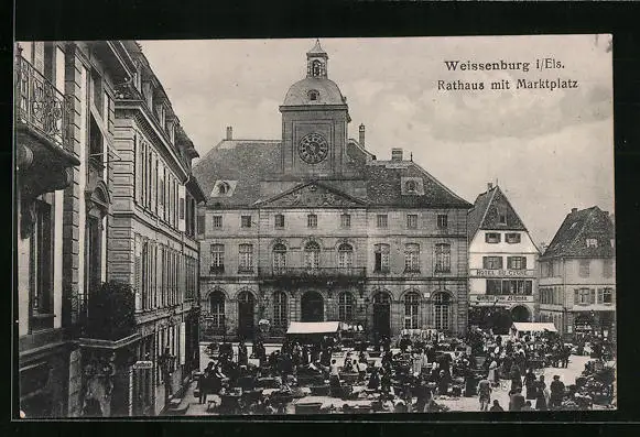 AK Weissenburg i. Els., Rathaus mit Marktpatz