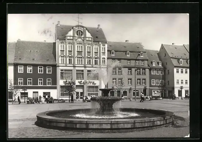 AK Weissenfels, Karl-Marx-Platz mit Springbrunnen