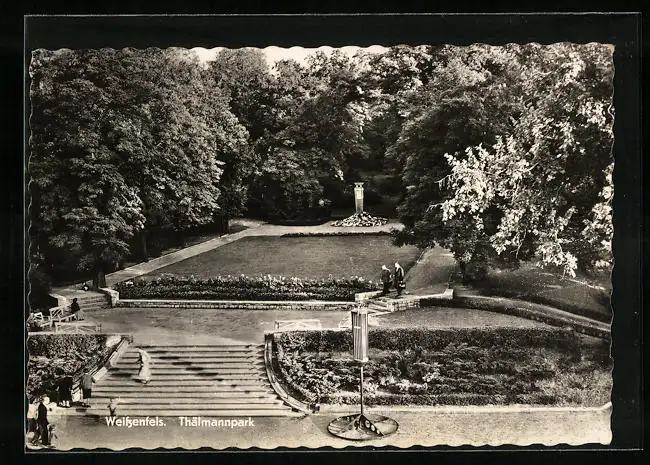 AK Weissenfels, Thälmannpark mit breiter Steintreppe