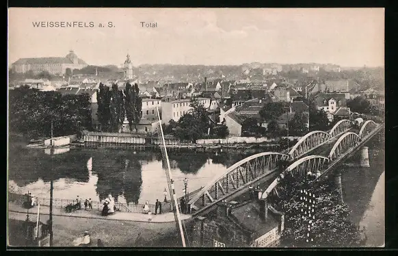 AK Weissenfels a. S., Totalansicht mit Brücke