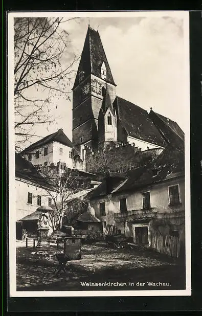 AK Weissenkirchen /Wachau, Hof-Idyll mit Blick zur Kirche