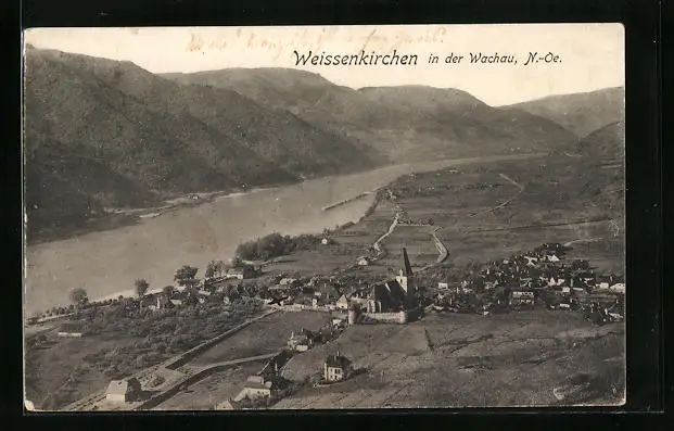AK Weissenkirchen / Wachau, Totalansicht aus der Vogelschau
