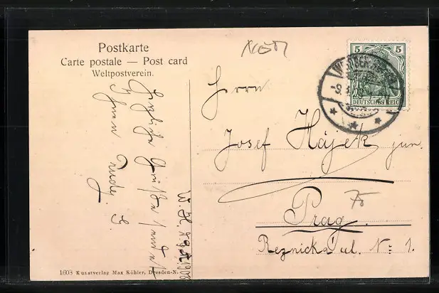 alte Ansichtskarte, gelaufen 1908, Stempelspur, guter Zustand