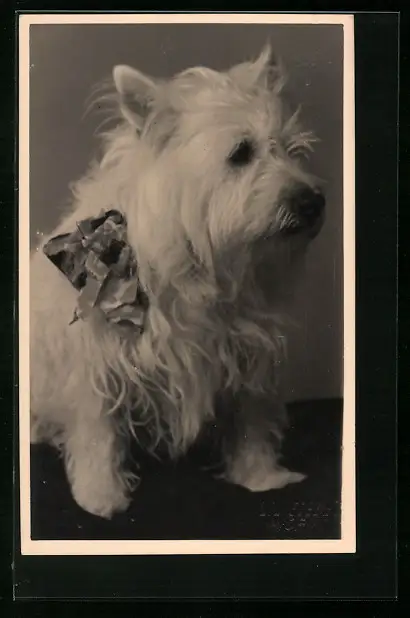 AK Weisser Yorkshire Terrier mit Schleife