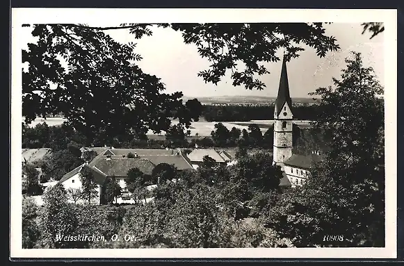 AK Weisskirchen /O. Oe., Ortspartie mit Kirche