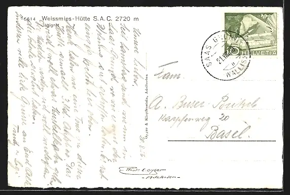 AK Weissmies-Hütte, Ansicht mit Jägigrat