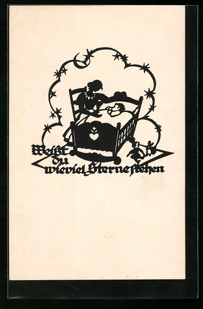 AK Weisst du wieviel Sterne stehen...-Mutter beim Kind in der Wiege, Scherenschnitt