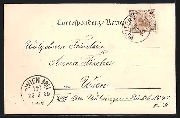 alte Ansichtskarte, gelaufen 1899, guter Zustand
