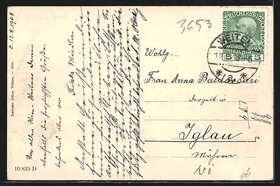 alte Ansichtskarte, gelaufen 1908, guter Zustand