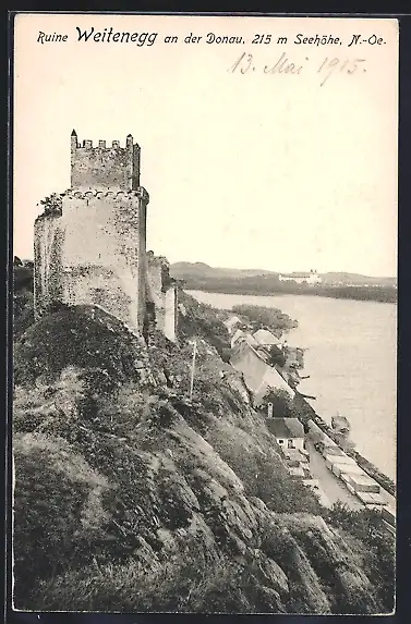 AK Weitenegg an der Donau, Ruine mit Donaupartie