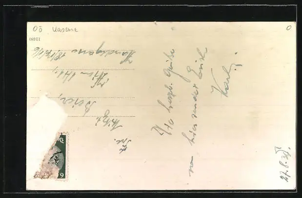 alte Ansichtskarte, gelaufen, Briefmarke entfernt, rückseitig Oberflächenschaden, Stecknadellöcher oben mittig, guter Zustand