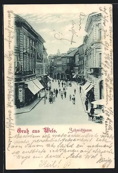 AK Wels, Belebte Szene in der Schmidtgasse