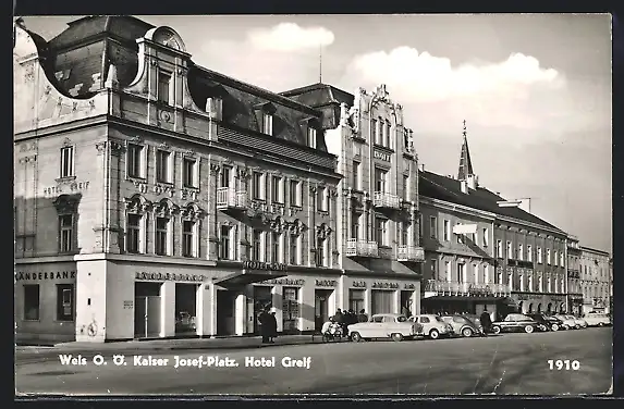 AK Wels, Kaiser Josef-Platz, Hotel Greif