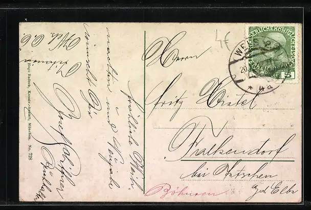 gelaufen 1912, Eckknick rechts oben, guter Zustand
