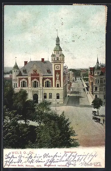 AK Wels /O.-Oe., Blick auf die Sparkasse