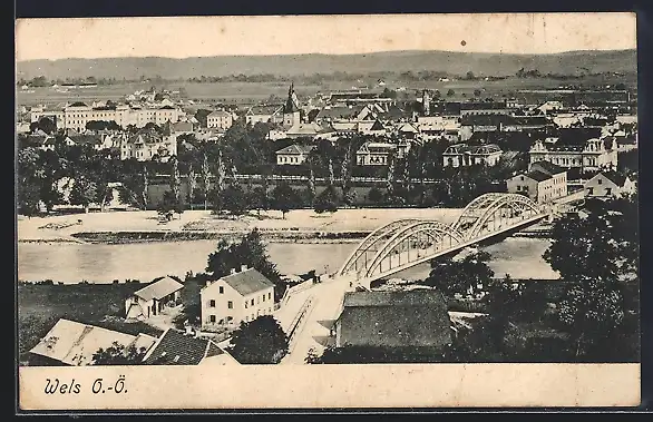 AK Wels /O.-Ö., Ortsansicht mit Brücke