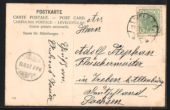 alte Ansichtskarte, gelaufen 1907, guter Zustand