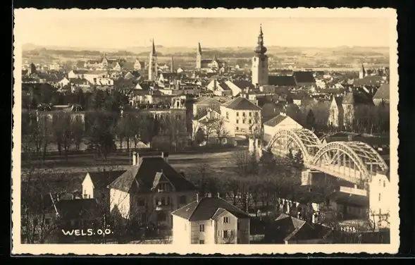 AK Wels /O.-Ö., Teilansicht mit Brücke