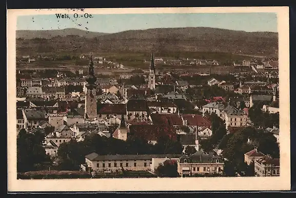 AK Wels /O.-Oe., Teilansicht mit Kirche