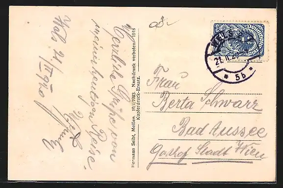 alte Ansichtskarte, gelaufen 1920, Stempelspur, guter Zustand