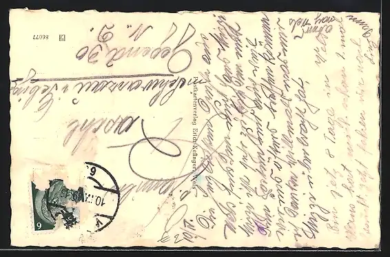 alte Ansichtskarte, gelaufen 1939, Briefmarke entfernt, rückseitig Oberflächenschaden, Bugspur re. unten, guter Zustand