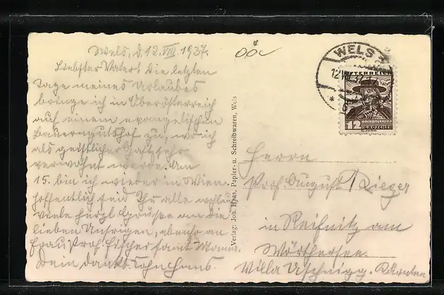 alte Ansichtskarte, gelaufen 1937, guter Zustand