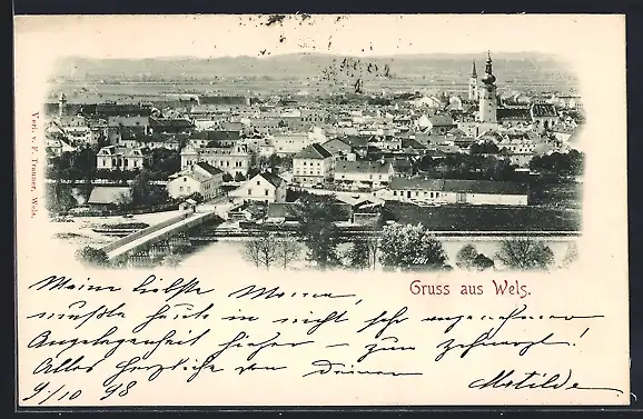AK Wels, Ortsansicht mit Brücke