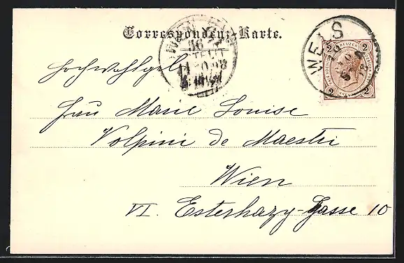 alte Ansichtskarte, gelaufen 1898, Stempelspur, guter Zustand