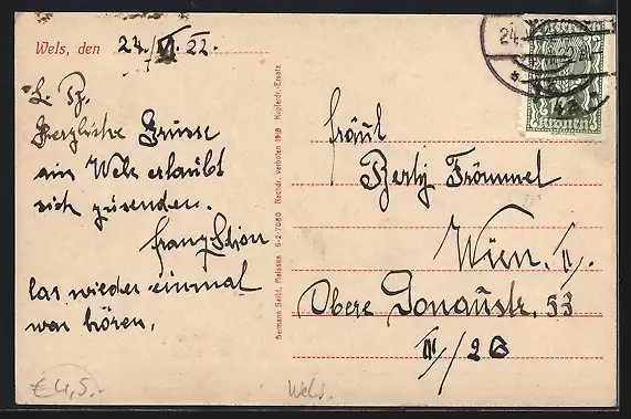 gelaufen 1922, Eckknick unten re., guter Zustand
