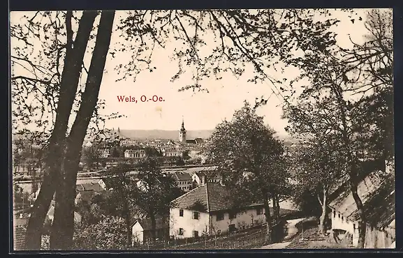 AK Wels, Ortsansicht mit Kirche
