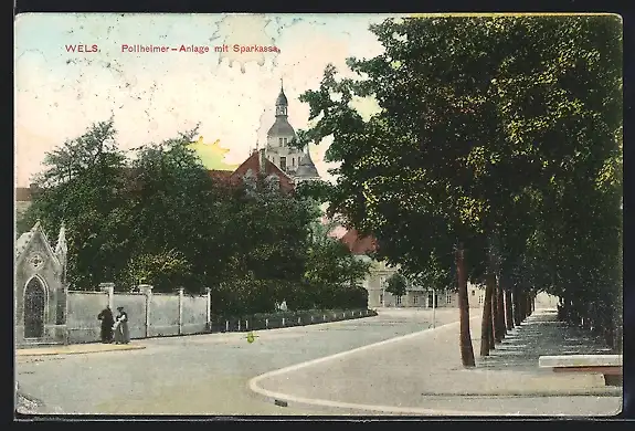 AK Wels, Pollheimer-Anlage, Ansicht mit Sparkasse
