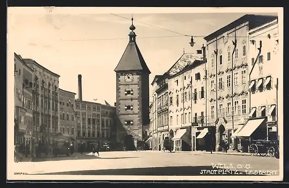 AK Wels, Stadtplatz und Lederertor