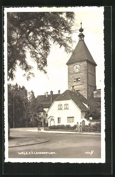 AK Wels, Strassenpartie am Ledererturm