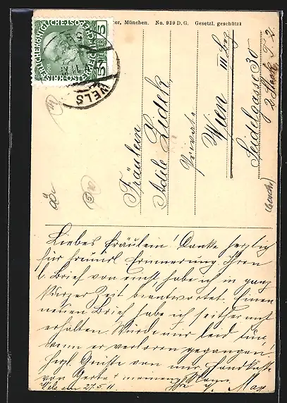 alte Ansichtskarte, gelaufen 1911, Stempelspur, Bugspur re. unten, guter Zustand