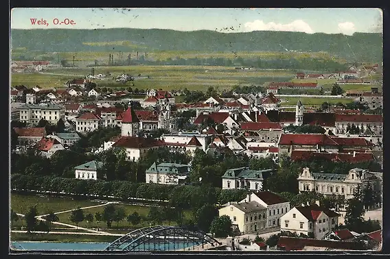 AK Wels, Teilansicht mit Brücke