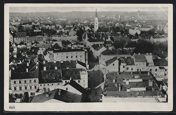AK Wels, Teilansicht mit Kirche und Strassenpartie