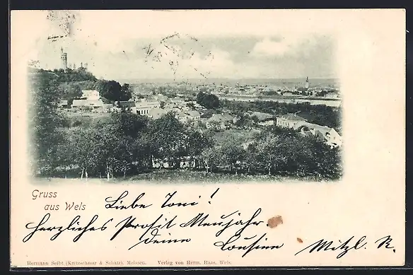 AK Wels, Teilansicht mit Turm