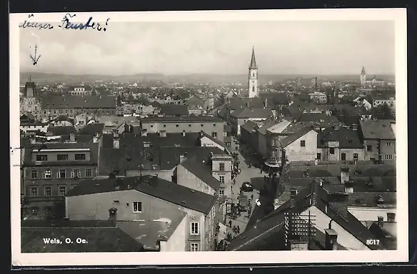 AK Wels, Totalansicht mit Fernblick aus der Vogelschau