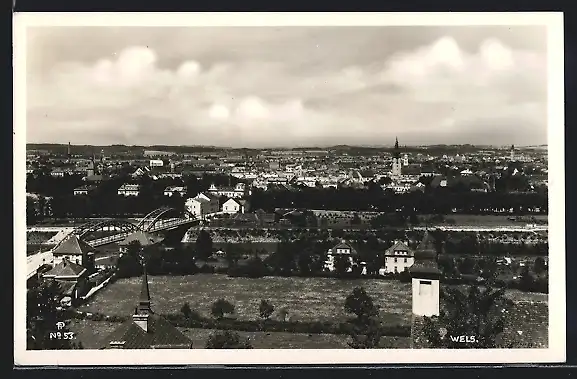 AK Wels, Totalansicht von einem Berg aus
