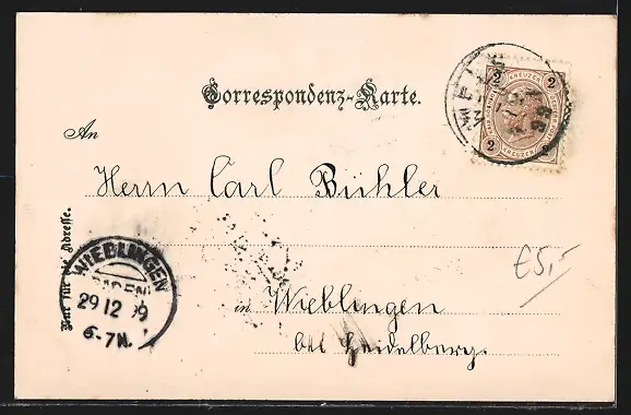 alte Ansichtskarte, gelaufen 1899, guter Zustand