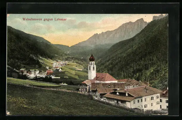 AK Welschnofen, Ortsansicht gegen Latemar