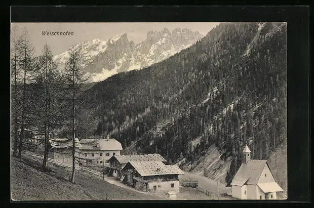 AK Welschnofen, Ortsansicht mit Gebirgskette