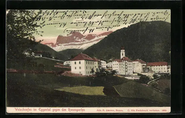 AK Welschnofen, Ortspartie gegen den Rosengarten