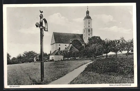 AK Wemding, Wallfahrtskirche mit Umgebung