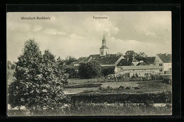 AK Wendisch-Buchholz, Panoramaansicht mit der Kirche