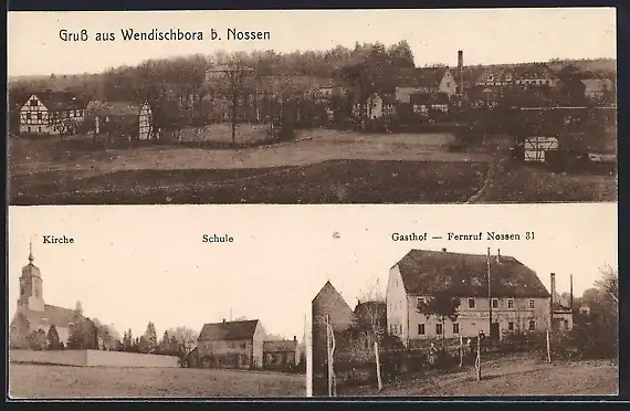 AK Wendischbora, Totalansicht, Kirche, Schule, Gasthaus