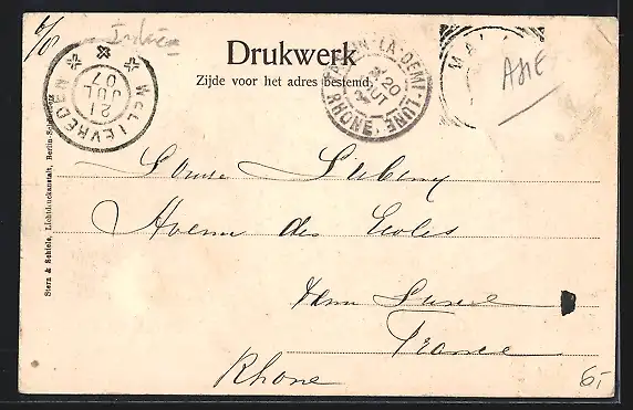 alte Ansichtskarte, gelaufen 1907, Briefmarke entfernt, rückseitig Oberflächenschaden, Eckknick li. oben, guter Zustand
