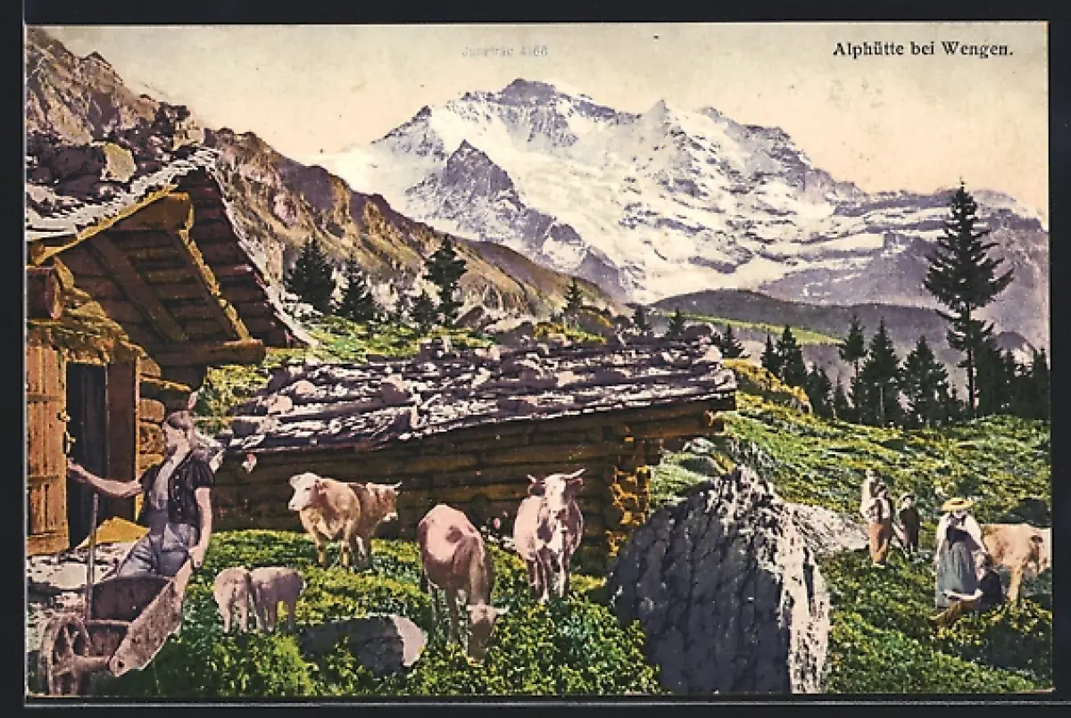 AK Wengen, Kühe vor einer Alphütte