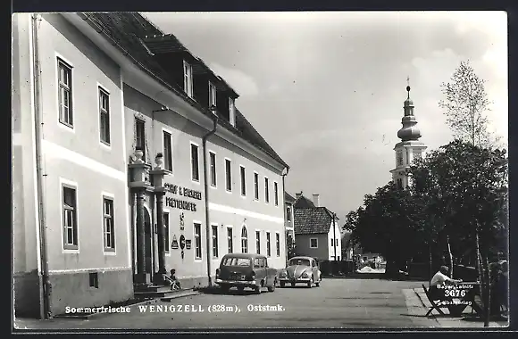 AK Wenigzell, Strassenpartie mit Gasthaus Prettenhofer und Kirche