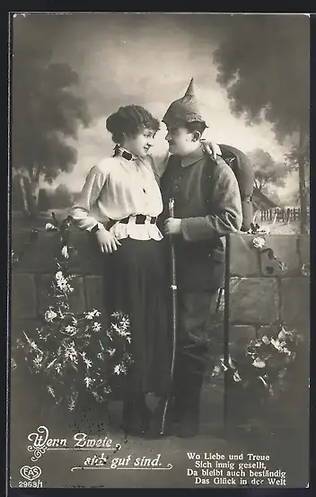 AK Wenn Zweie sich gut sind, Soldat in Uniform mit seiner Liebsten